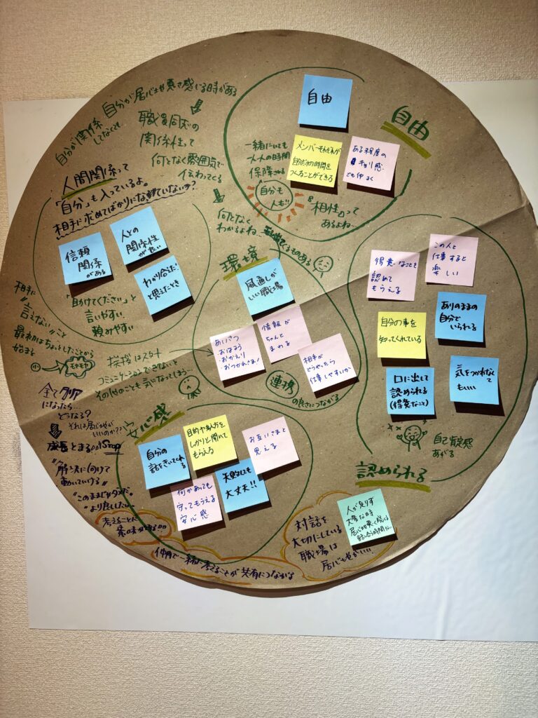 今回の会では、最初に「これまでに居心地がいいと感じた瞬間」を出し合うところから始めました。